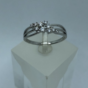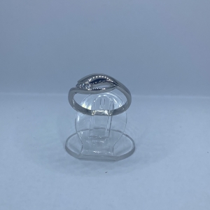 Fehér köves,hullám mintás ezüst gyűrű,rhódiumozott felülettel.A gyűrű legszélesebb része:8 mm Mérete:53 Súlya:2,5 gramm
