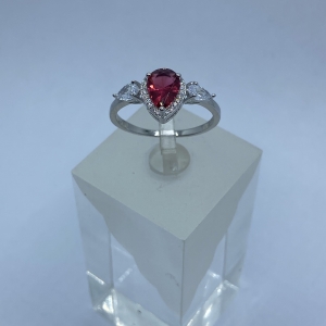 Ezüst gyűrű bordó,és fehér csepp alakú kővel