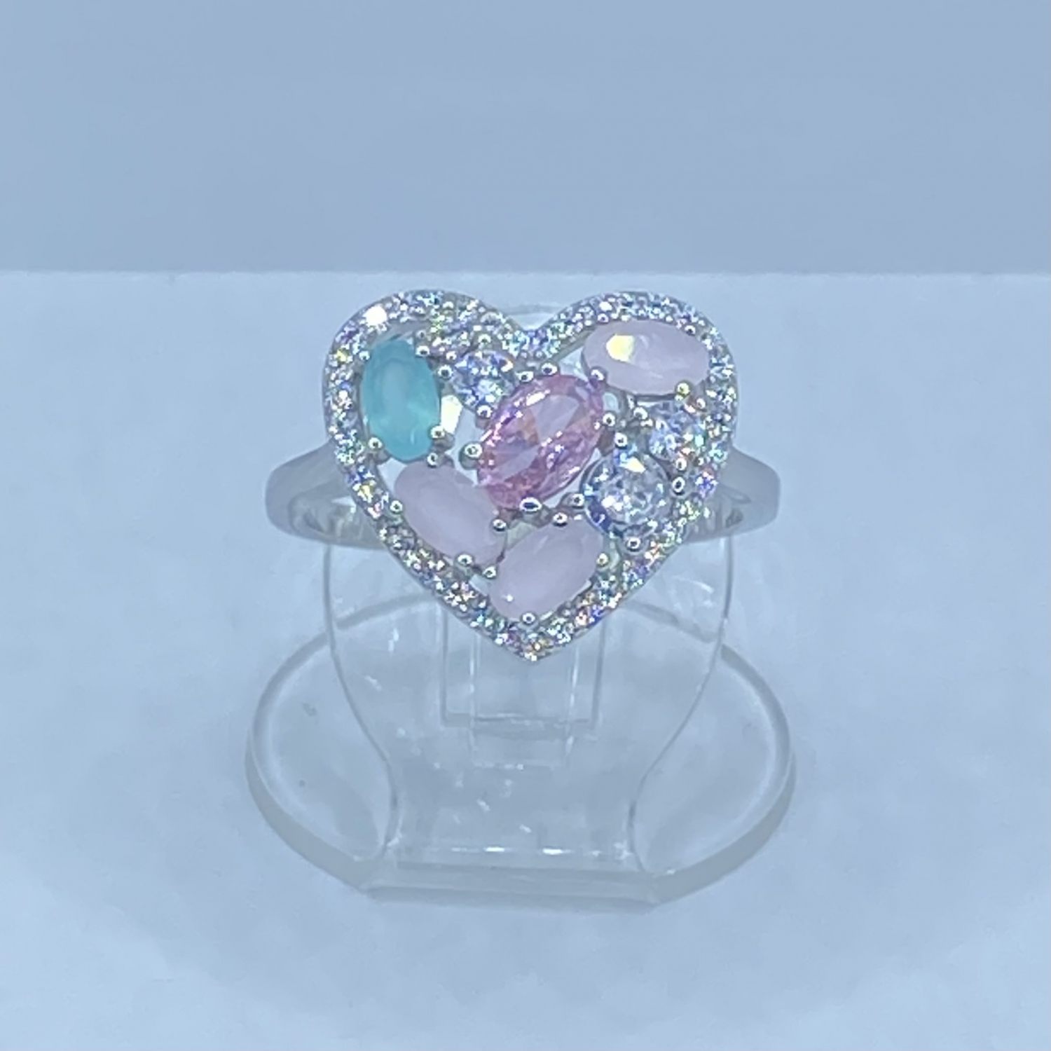 Szív alakú ezüst gyűrű pasztell színű kövekkel | Almond Ékszer Webáruház