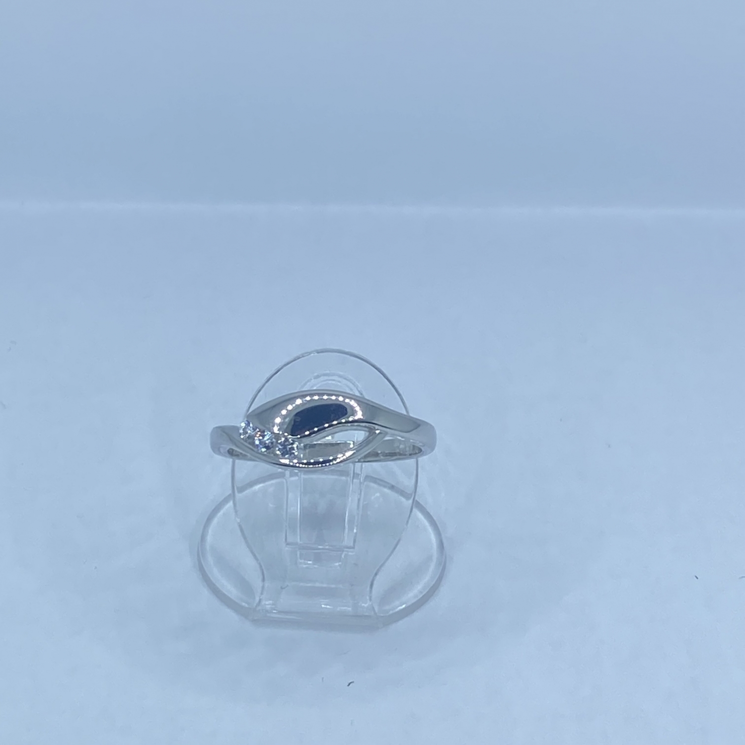 Fehér köves ezüst gyűrű modern stilizált kígyóval,rhódiumozott felülettel. Legnagyobb szélessége:7,3 mm. Mérete:52 Súlya:2,0 gramm