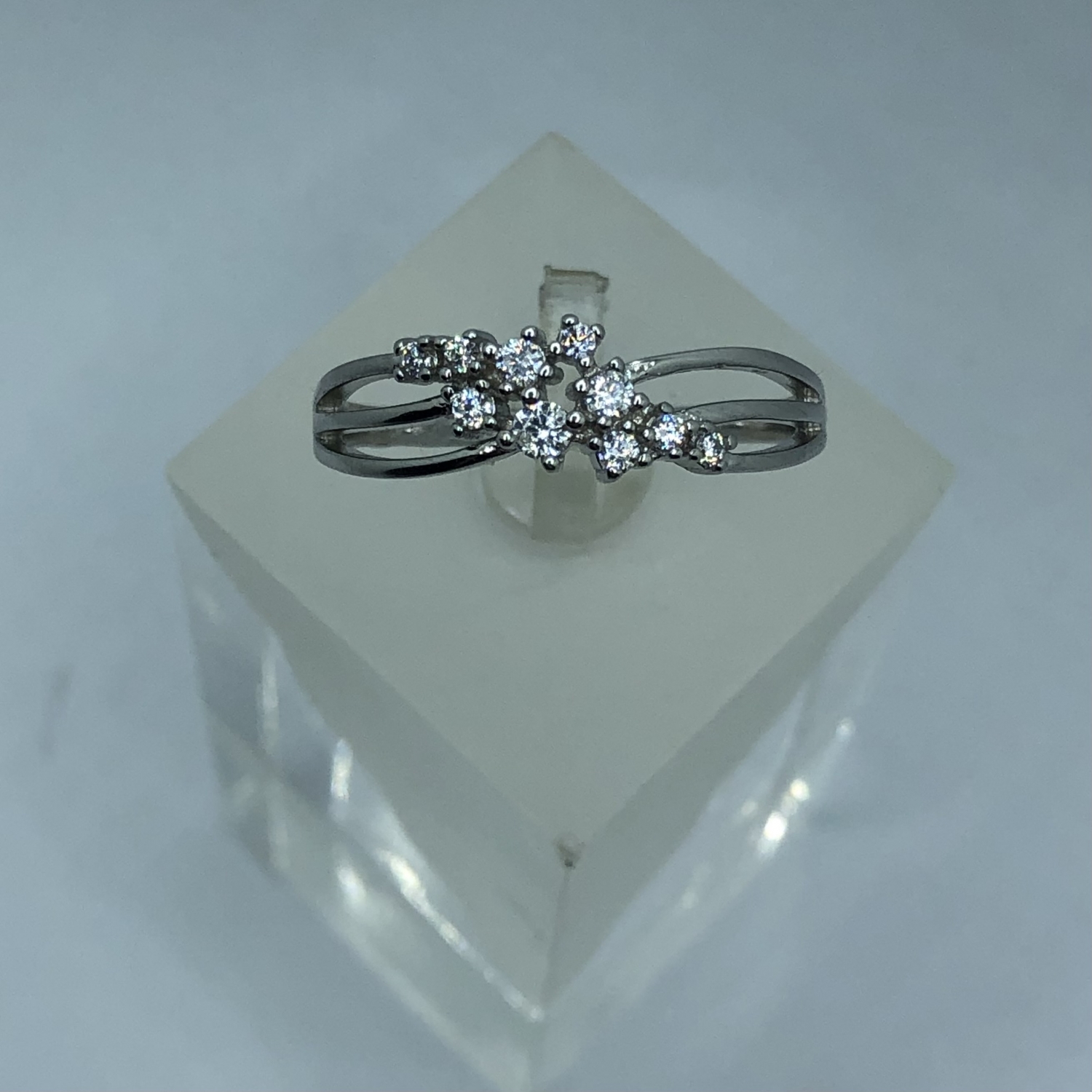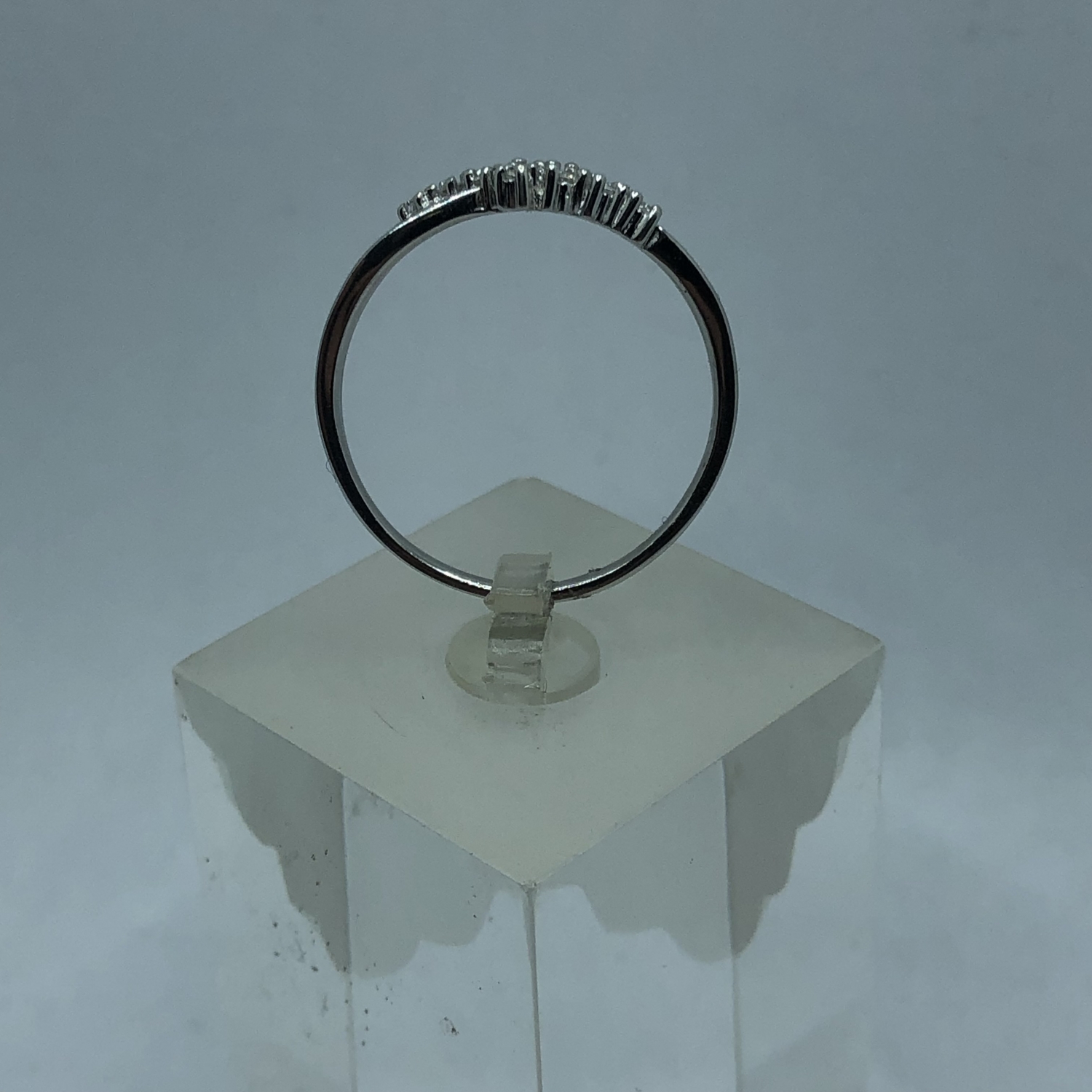 Modern mintájú ezüst gyűrű,fehér kövekkel,rhódiumozott felülettel.Nagy méret. Legszélesebb része 7,1 mm. Mérete:60 Súlya:2,59gramm