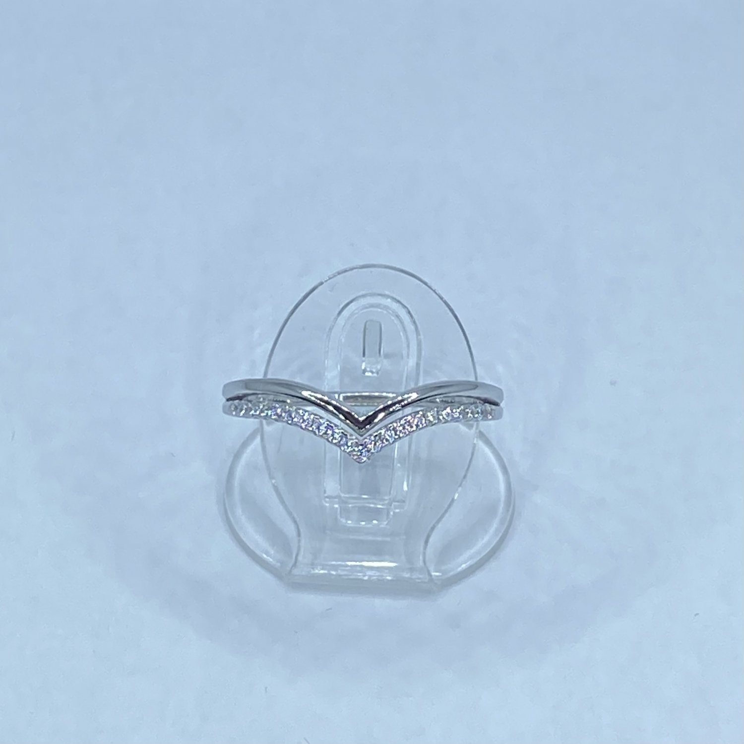 Dupla Victoria ezüst gyűrű,egy köves,és egy fényes ‘V’alakkal,rhódiumozott felülettel.Kis méretű.