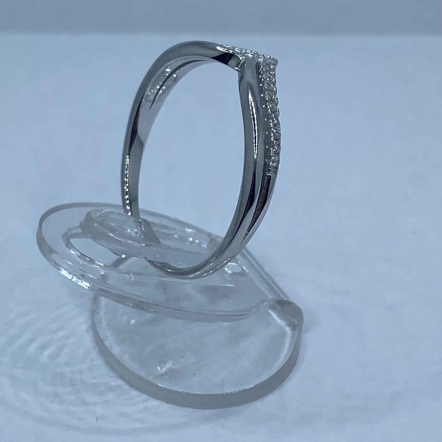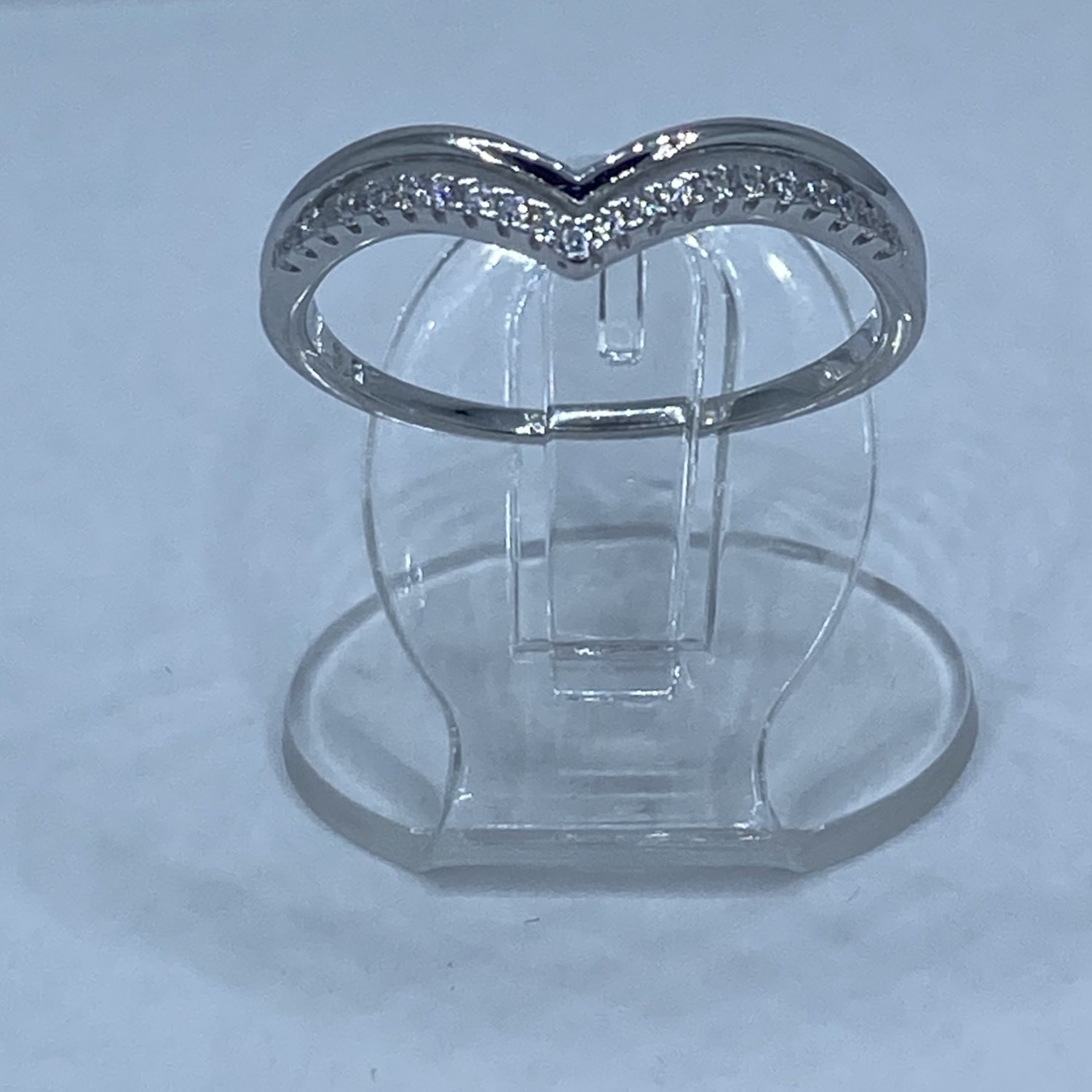 Dupla Victoria ezüst gyűrű,egy köves,és egy fényes ‘V’alakkal,rhódiumozott felülettel.Kis méretű.