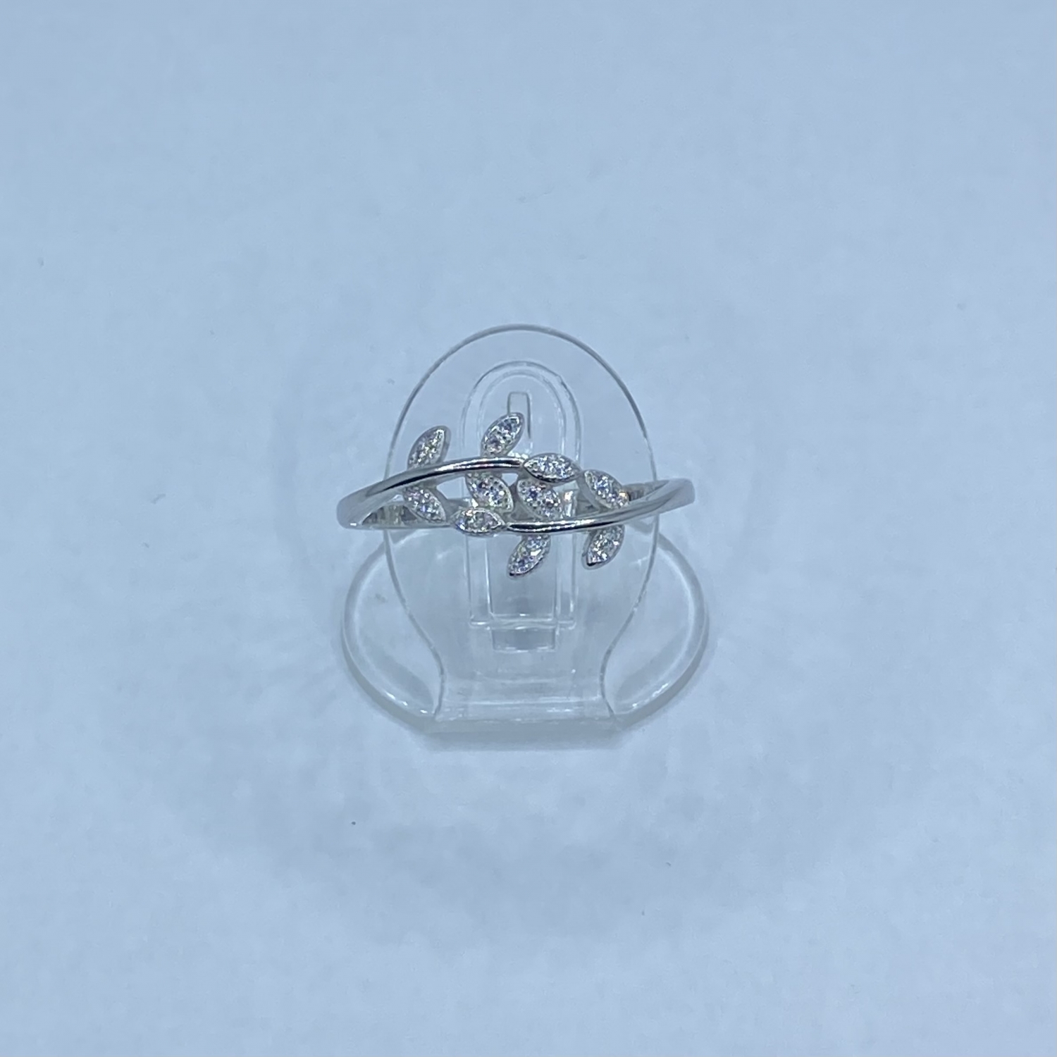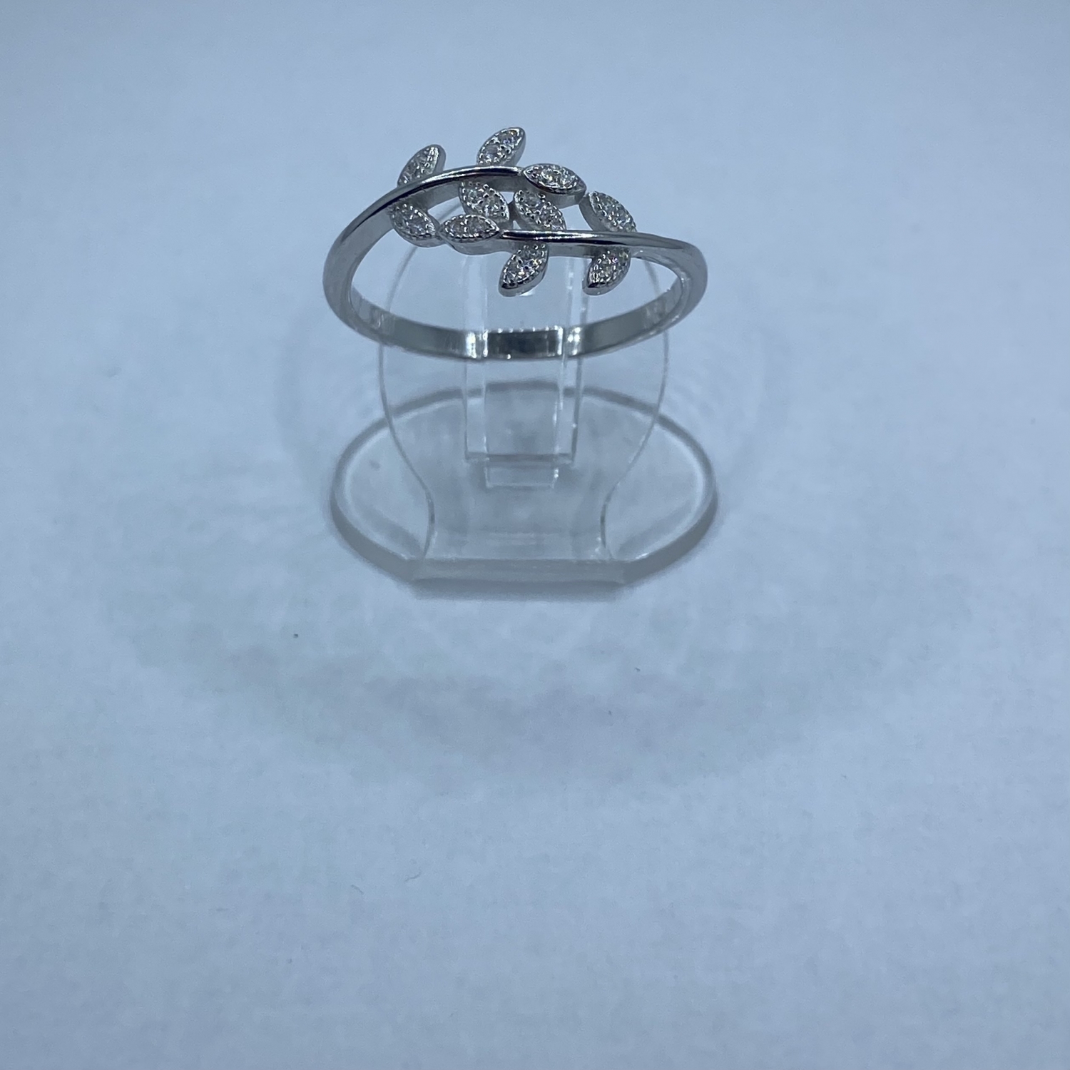 Kecsek,levél mintás ezüst gyűrű fehér kövekkel,rhódiumozott felülettel.