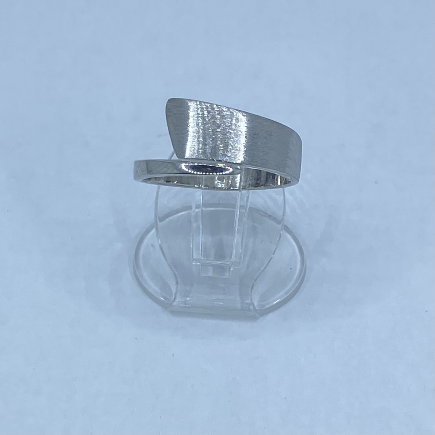 Kő nélküli ezüst gyűrű nyitott sínnel,selymesen matt,és fényes felülettel,rhódiumozott felülettel.