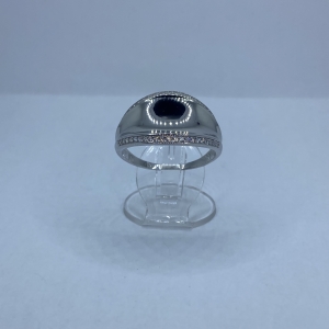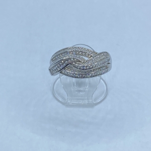 Összefonódott ezüst gyűrű fehér kövekkel,rhódiumozott felülettel.Extra nagy méret Legszélesebb mérete:15 mm Mérete:70 Súlya:4,71 gramm