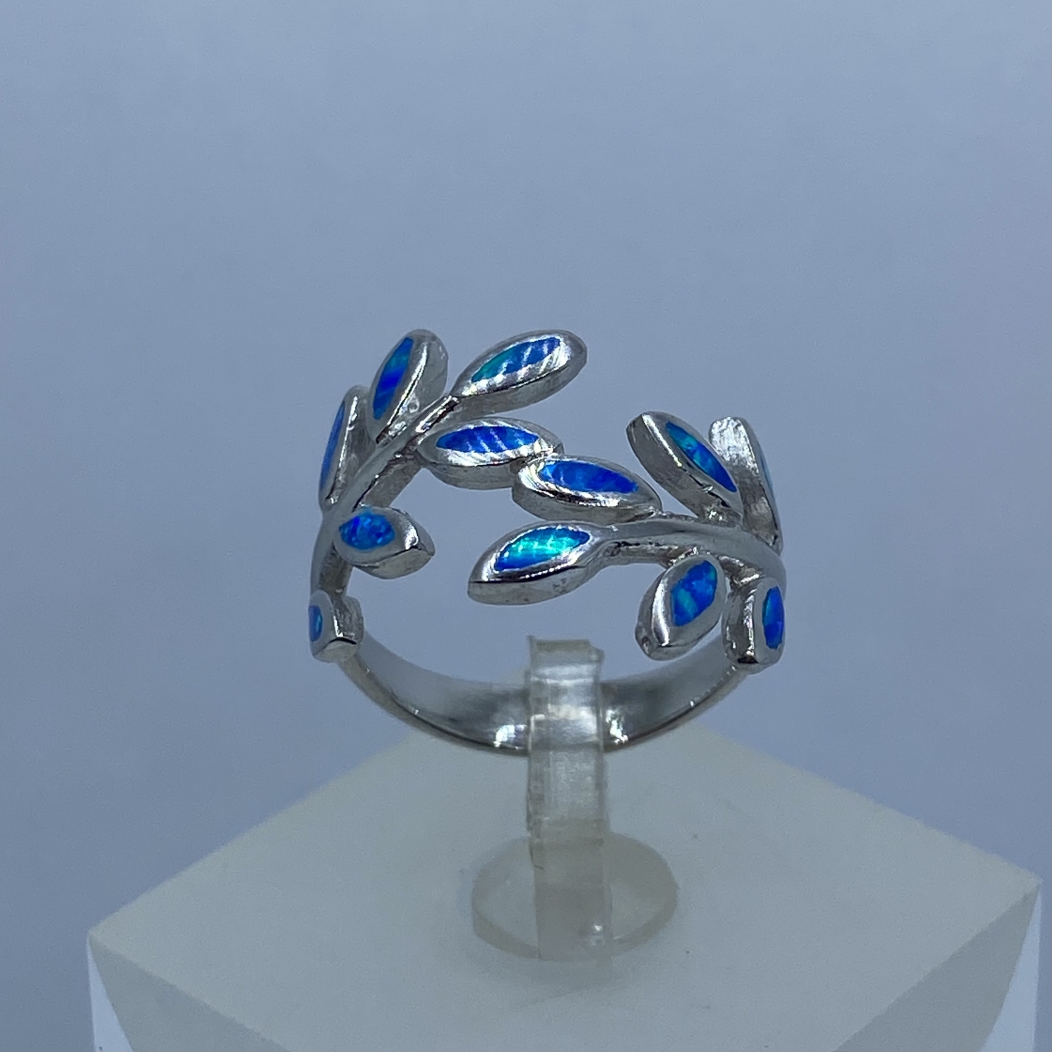 Leveles kék opálos ezüst gyűrű | Almond Ékszer Webáruház