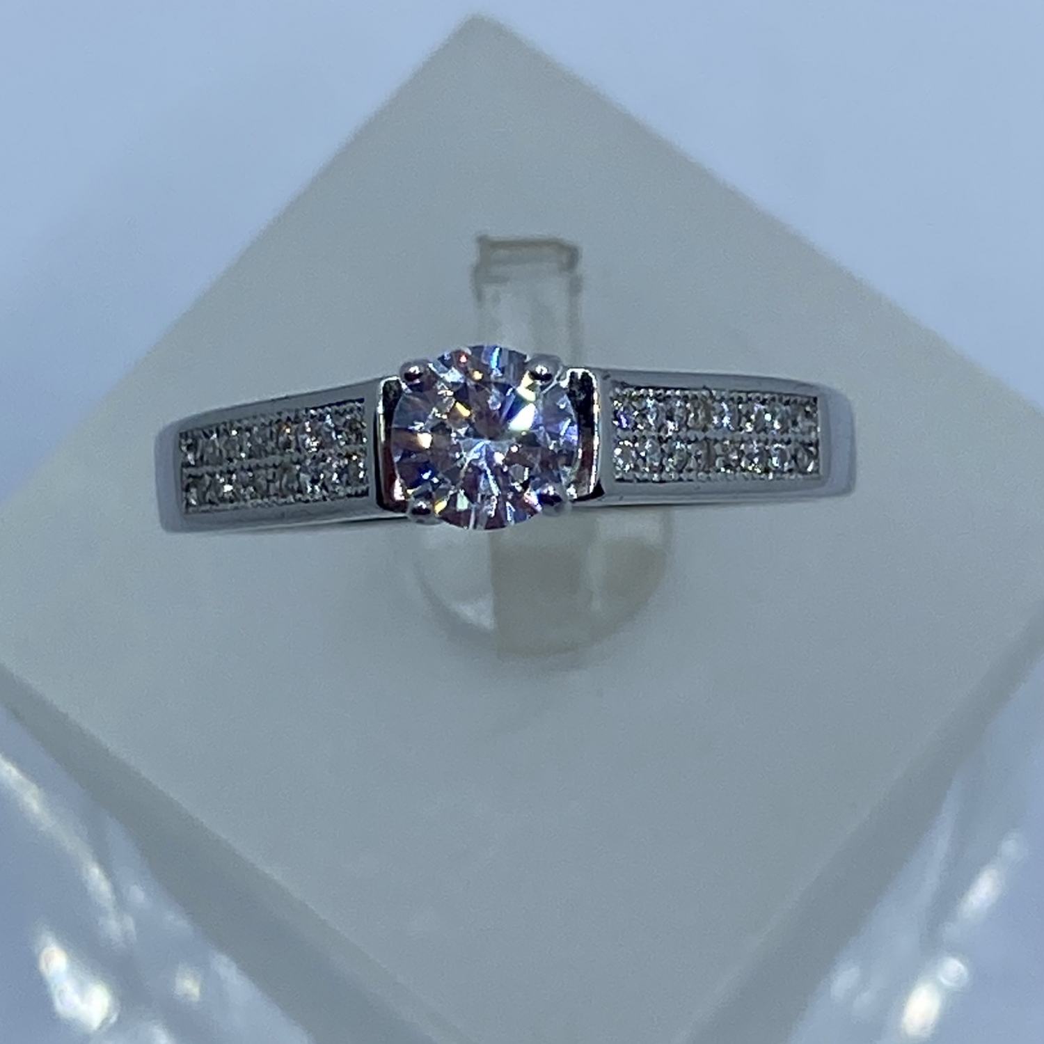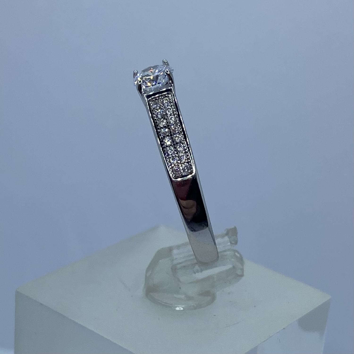 Ezüst eljegyzési gyűrű fehér ragyogó cirkónia kristállyal,rhódiumozott felülettel.