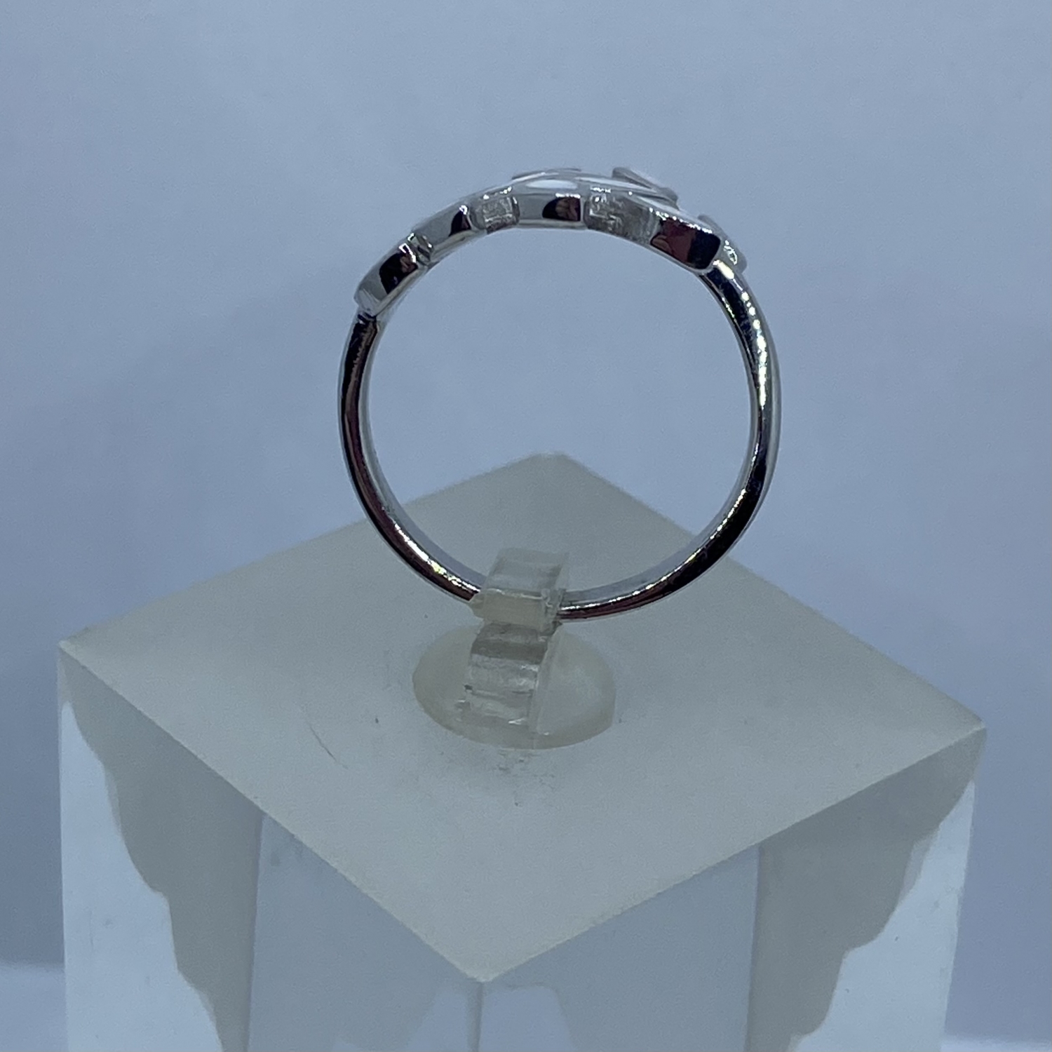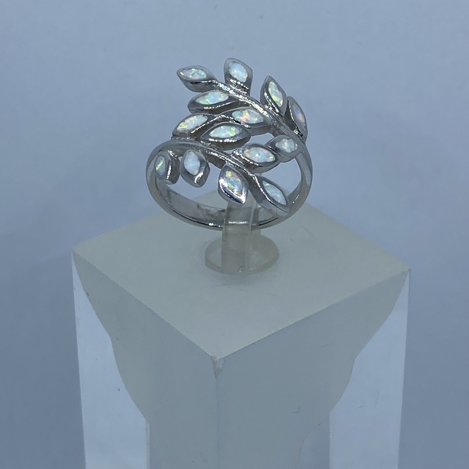 Leveles mintájú ezüst gyűrű fehér szintetikus  opállal,rhódiumozott felülettel.
