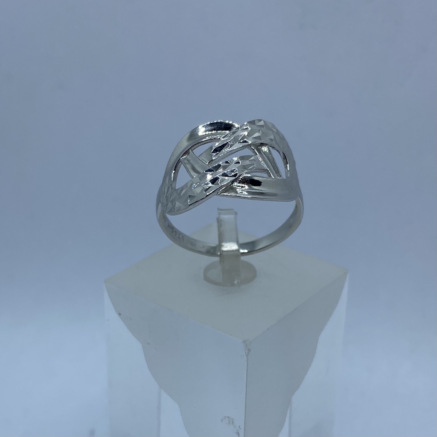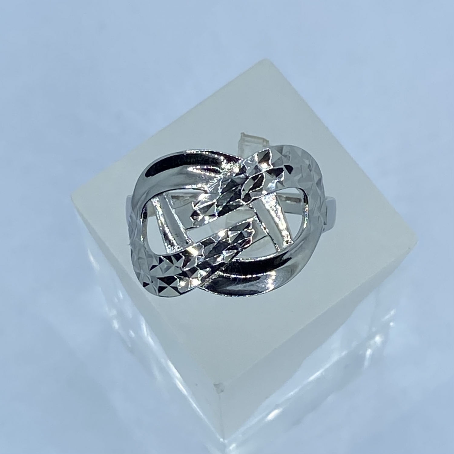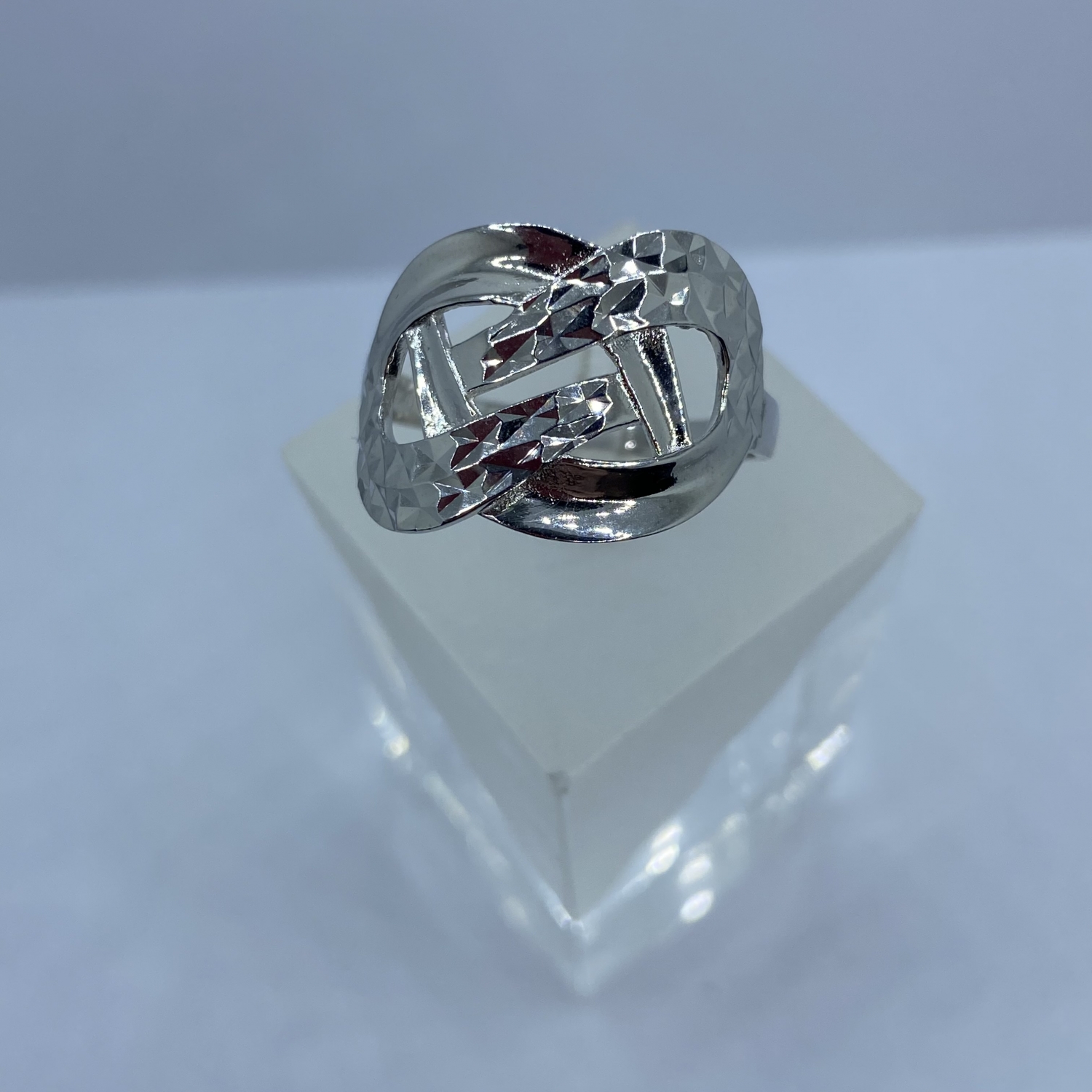Összefonódó mintájú vésett ezüst gyűrű rhódiumozott felülettel.