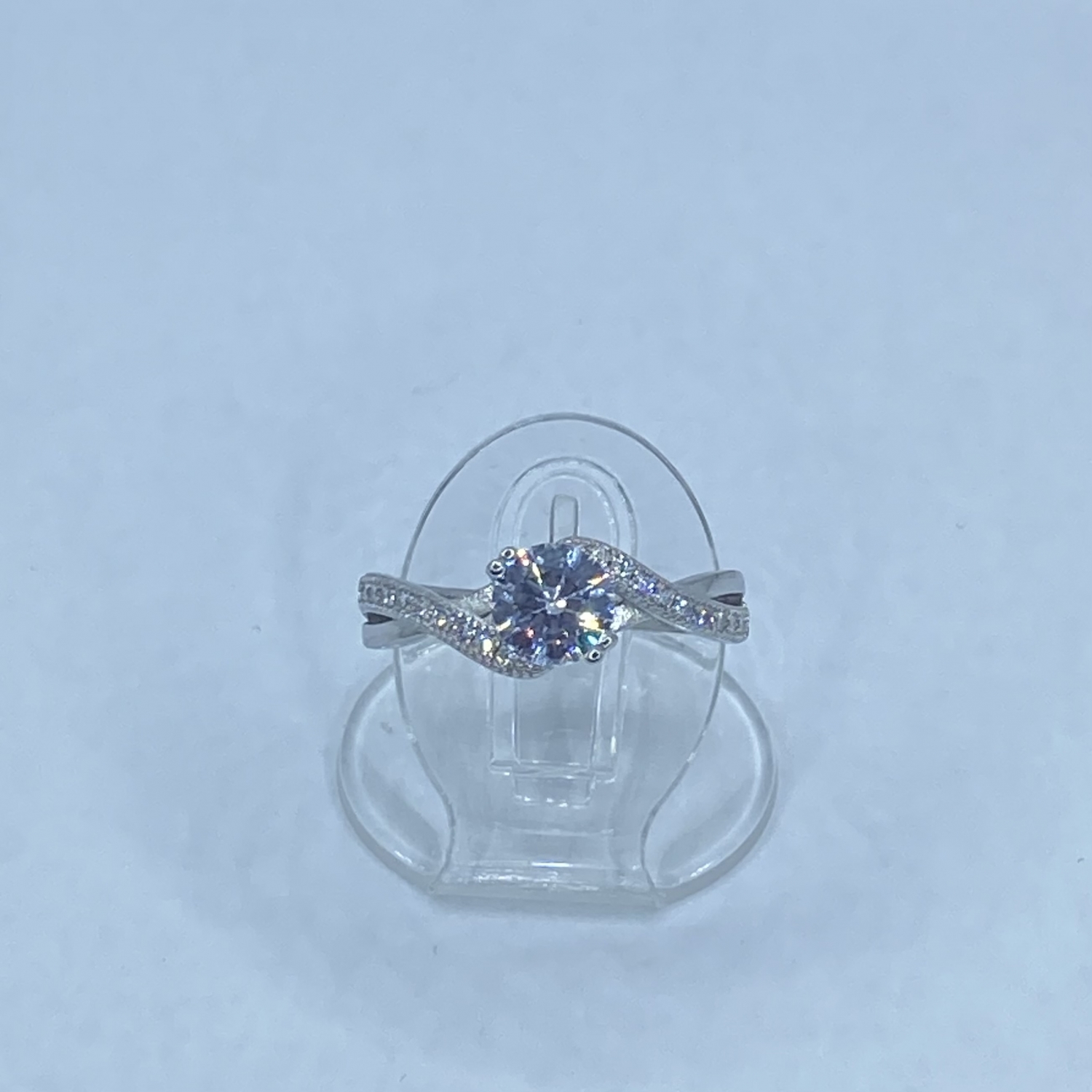 Eljegyzési ezüst gyűrűegy nagyobb középső,és több kisebb kővel díszítve.