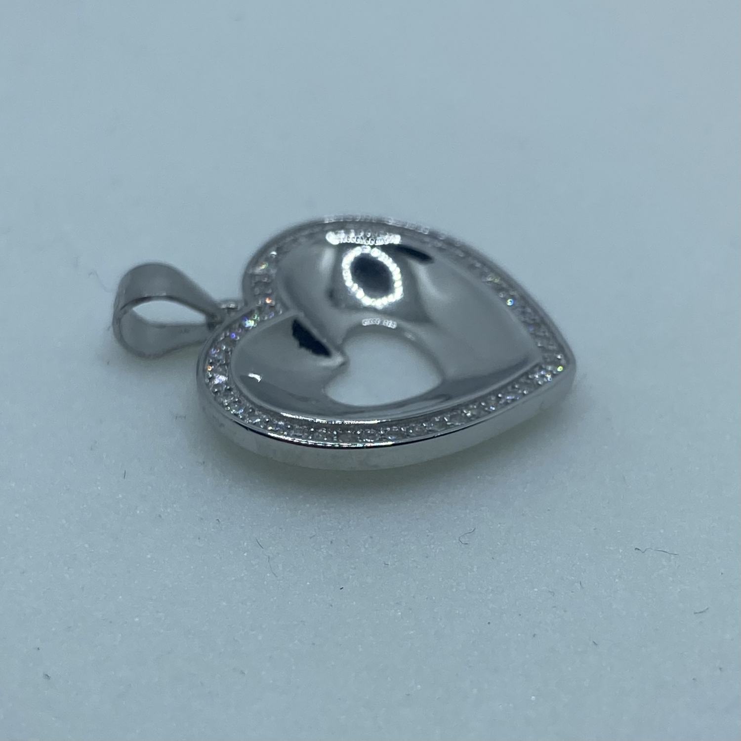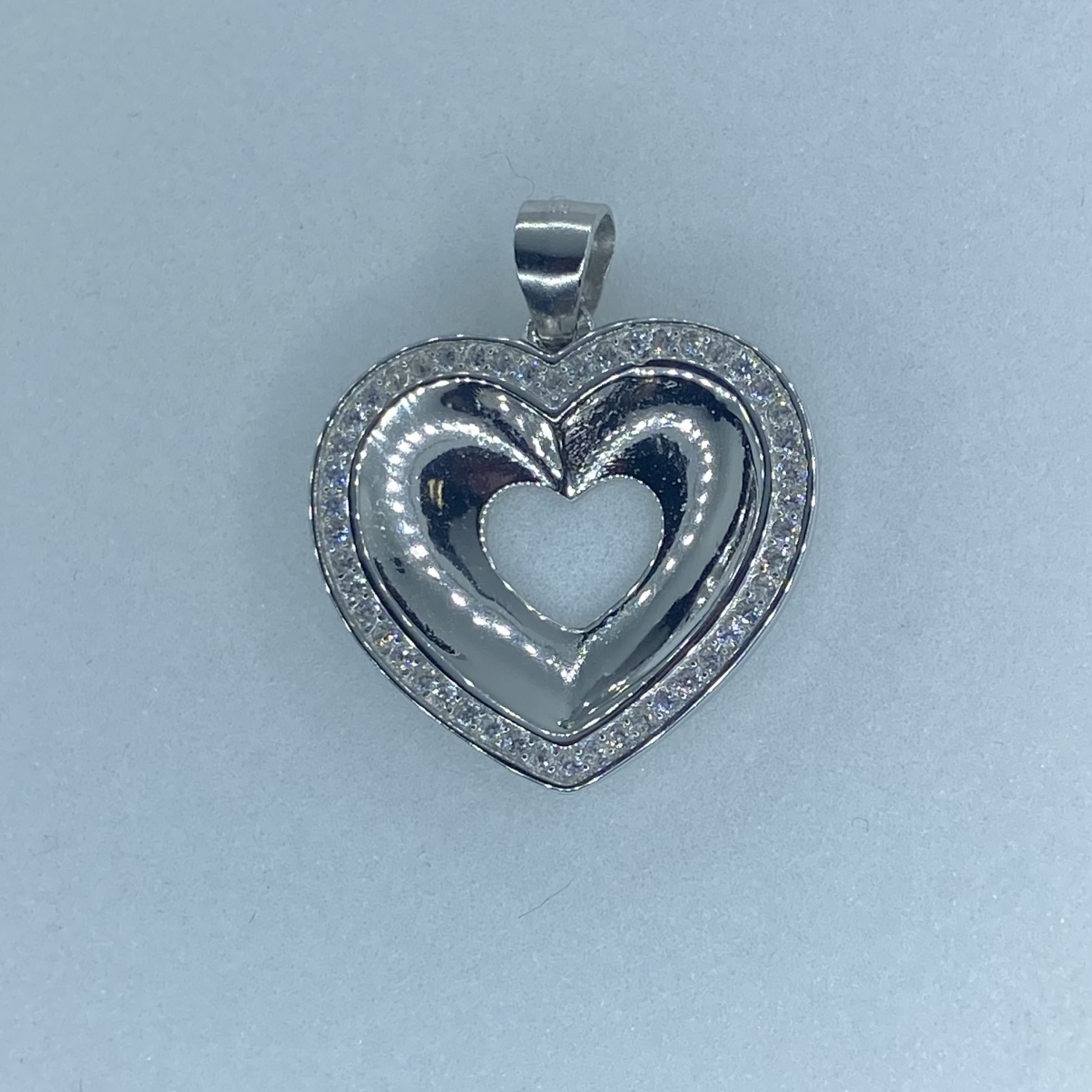 Nagy szív alakú fehér kővel,körben kis fehér kerek kövekkel foglalt ezüst medál rhódiumozott felülettel.A lánc külön megvásárolható. A medál teljes mérete:20*12mm A bújtató belső méretei:4,7*3,2 mm Súlya:2,4 gramm