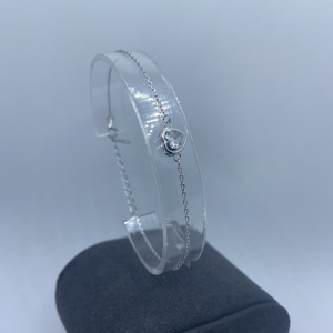 Tömör szemes anker karlánc egy darab fehér,szív alakú kővel,ródiumozott felülettel.Hossza 17-20 cm között állítható.A köves rész méretei:7.4*7.7 mm Súlya 1,6 gramm