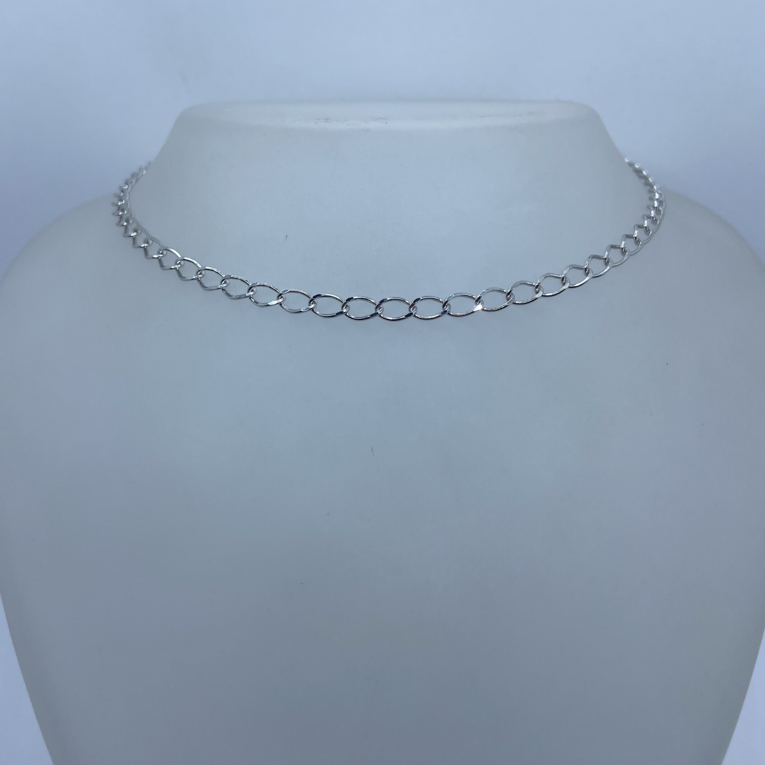 Tömör szemes pancer lánc rhódiumozott felülettel.