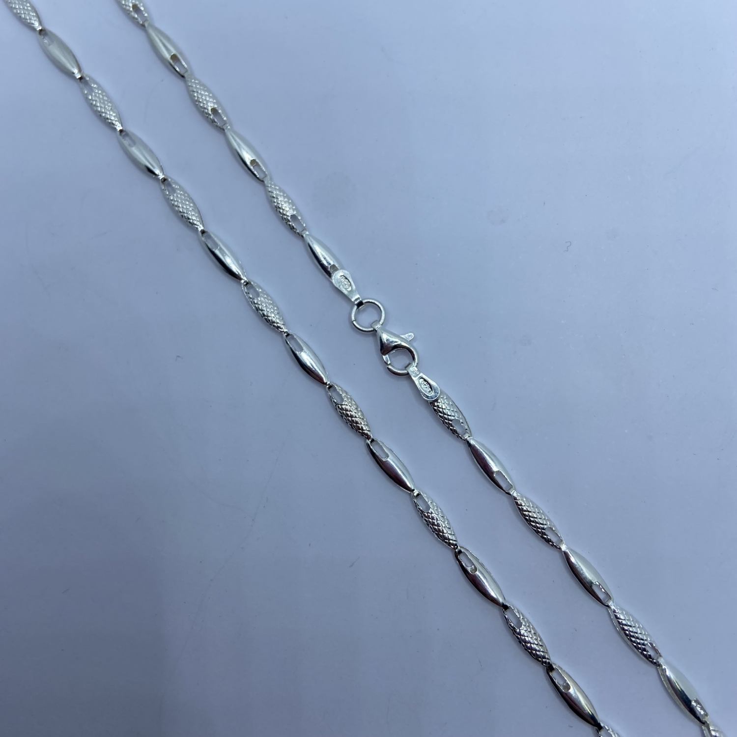 Ezüst lánc hosszúkás szemekkel