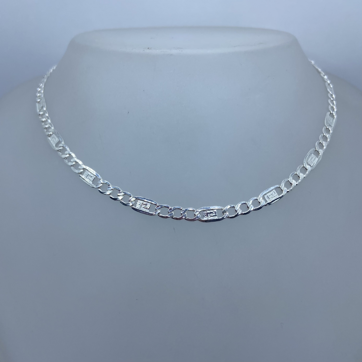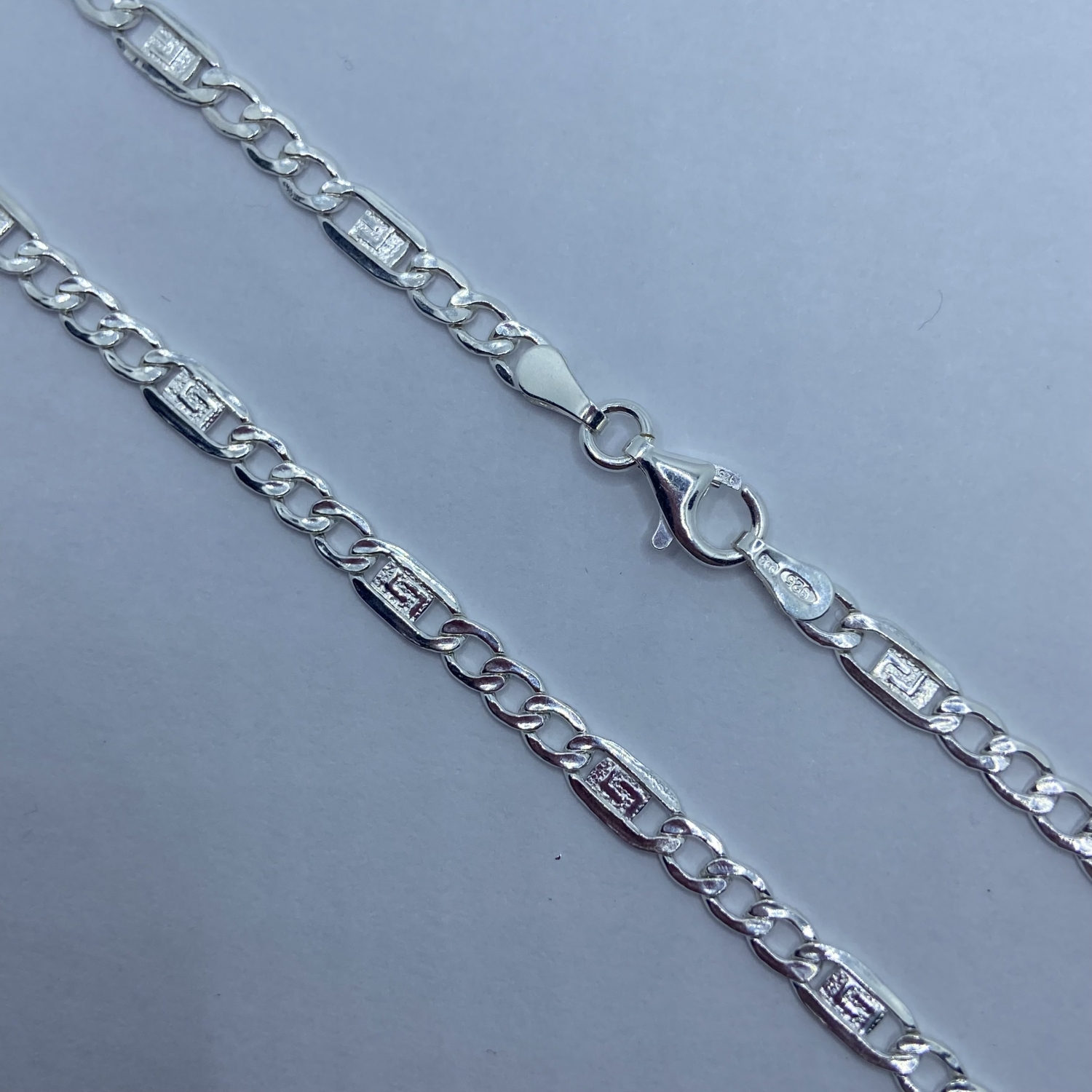 Ezüst 3+1 figaró lánc görög mintával | Almond Ékszer Webáruház