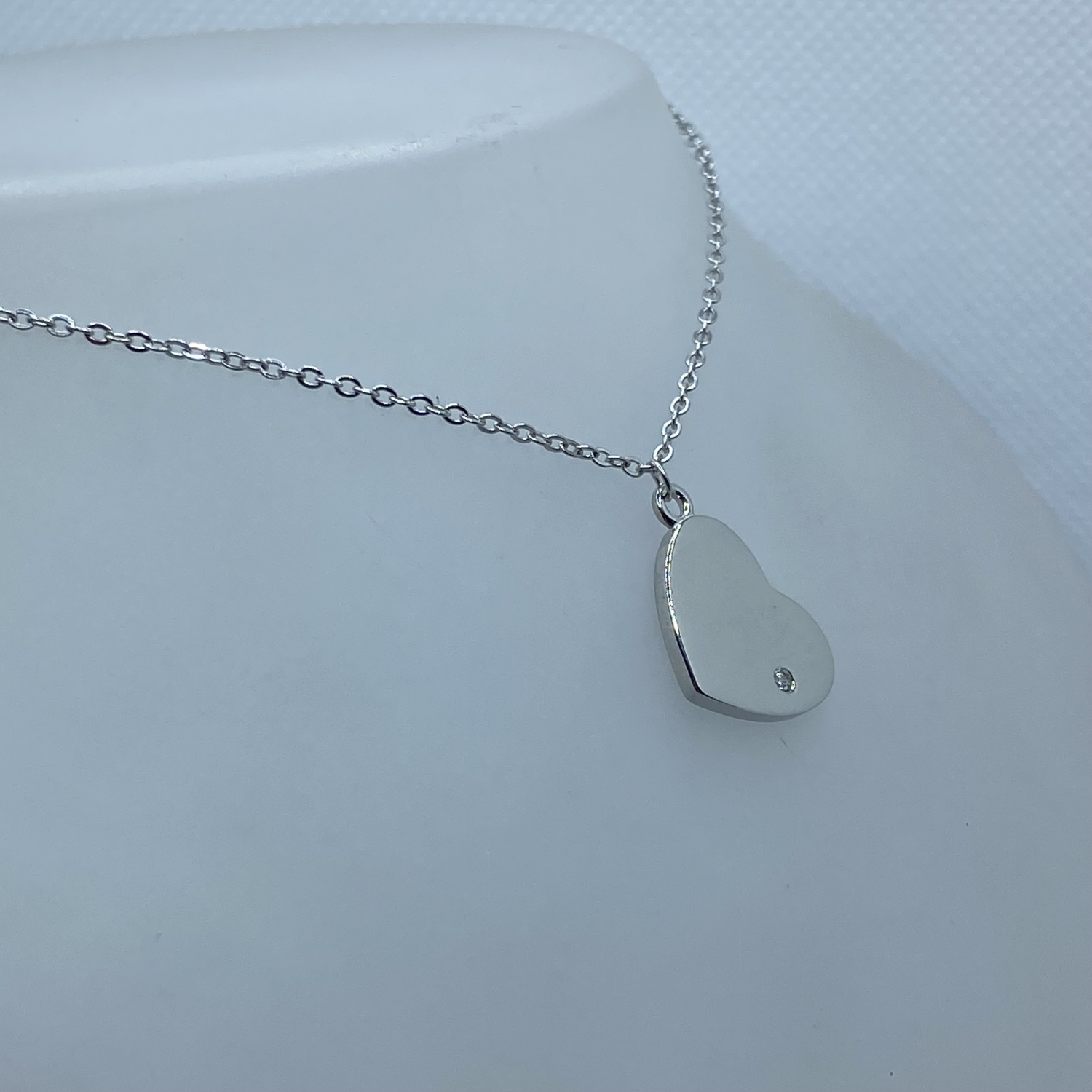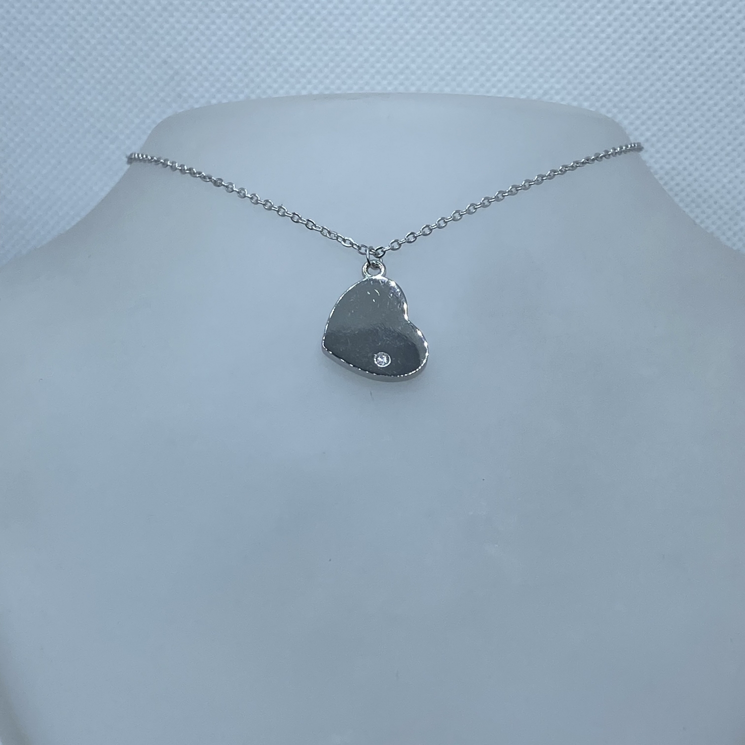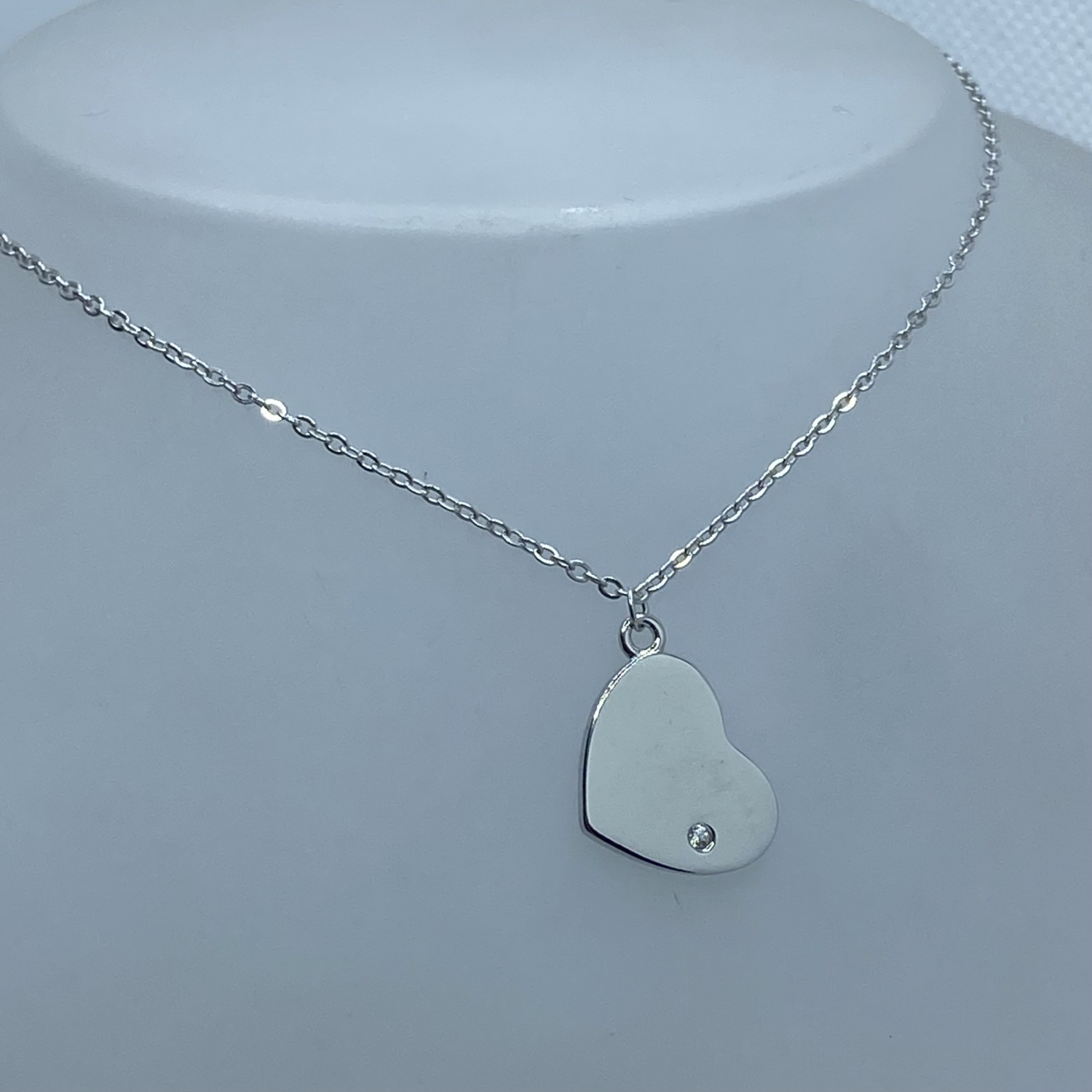 Tömör,vékony anker lánc,fényes szív medállal,egy darab cirkónia kővel,rhódiumozott felülettel.