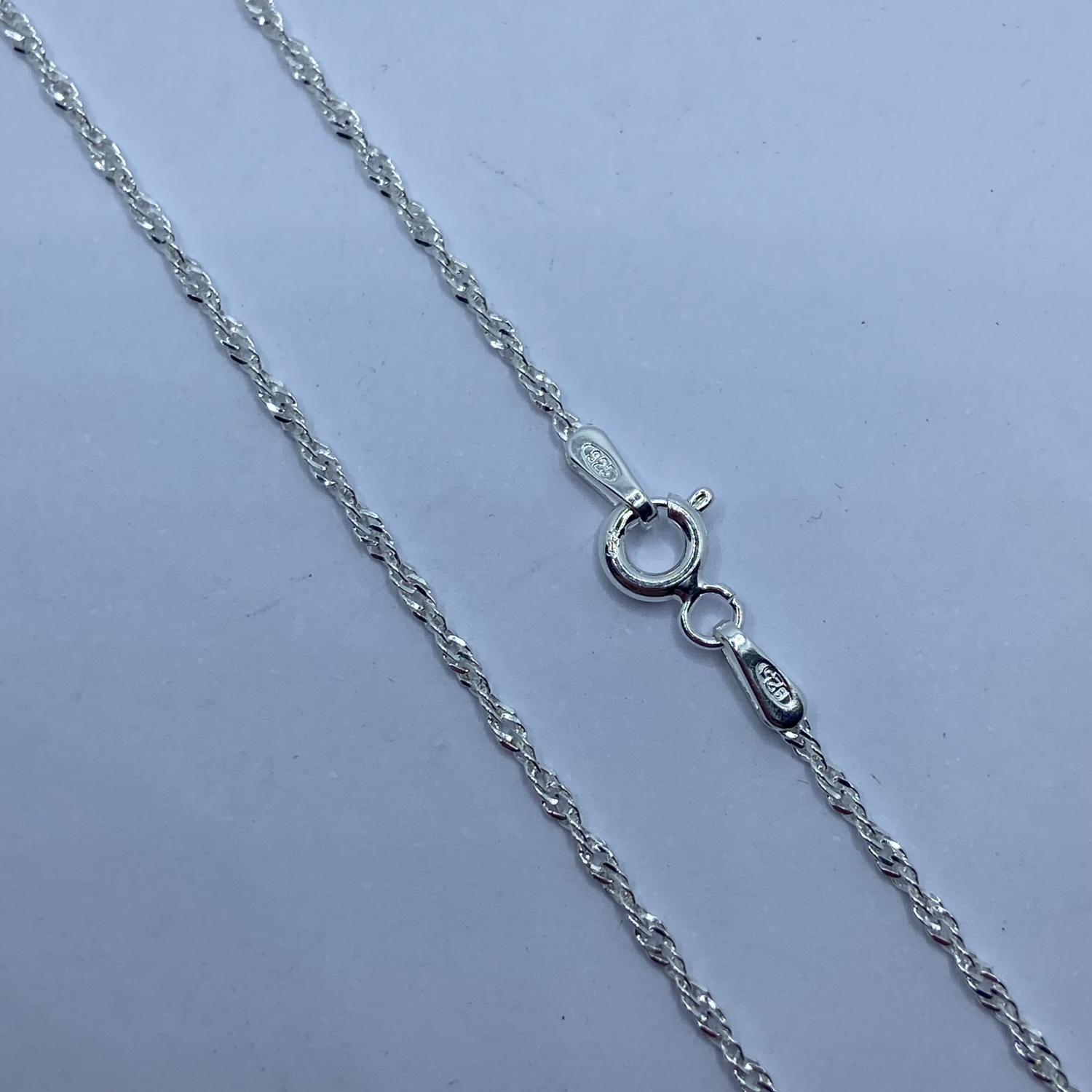 Tömör,vékony szingapúri csavart ezüst lánc.