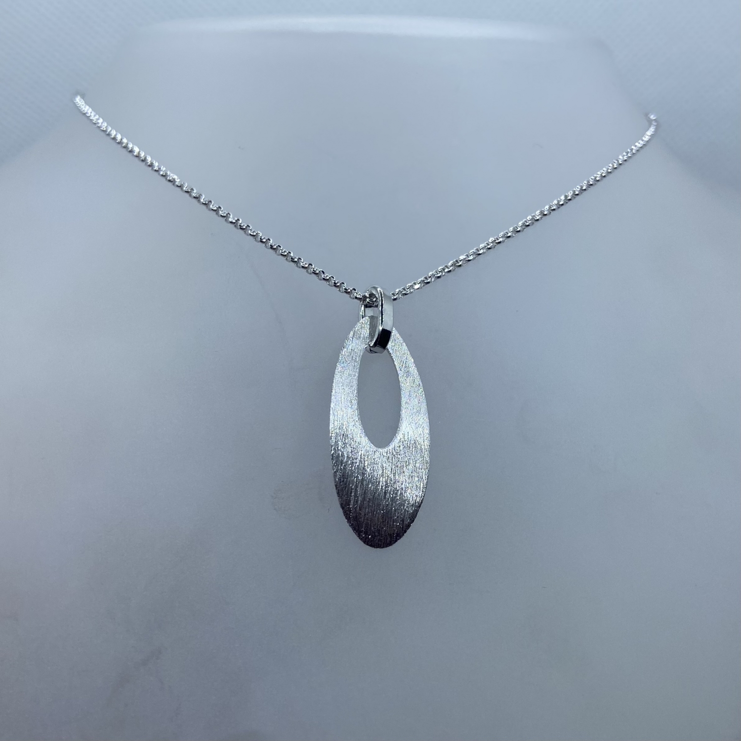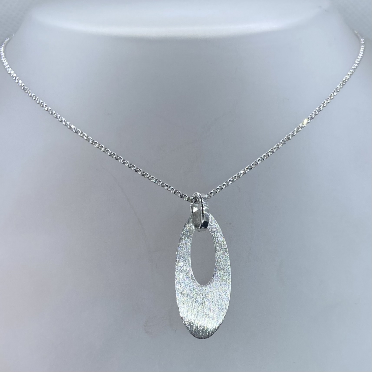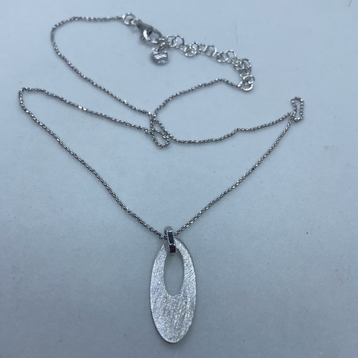 Tömör,fényesen csillogó,gyöngyanker ezüst lánc ovális mattírozott medállal,rhódiumozott felülettel.