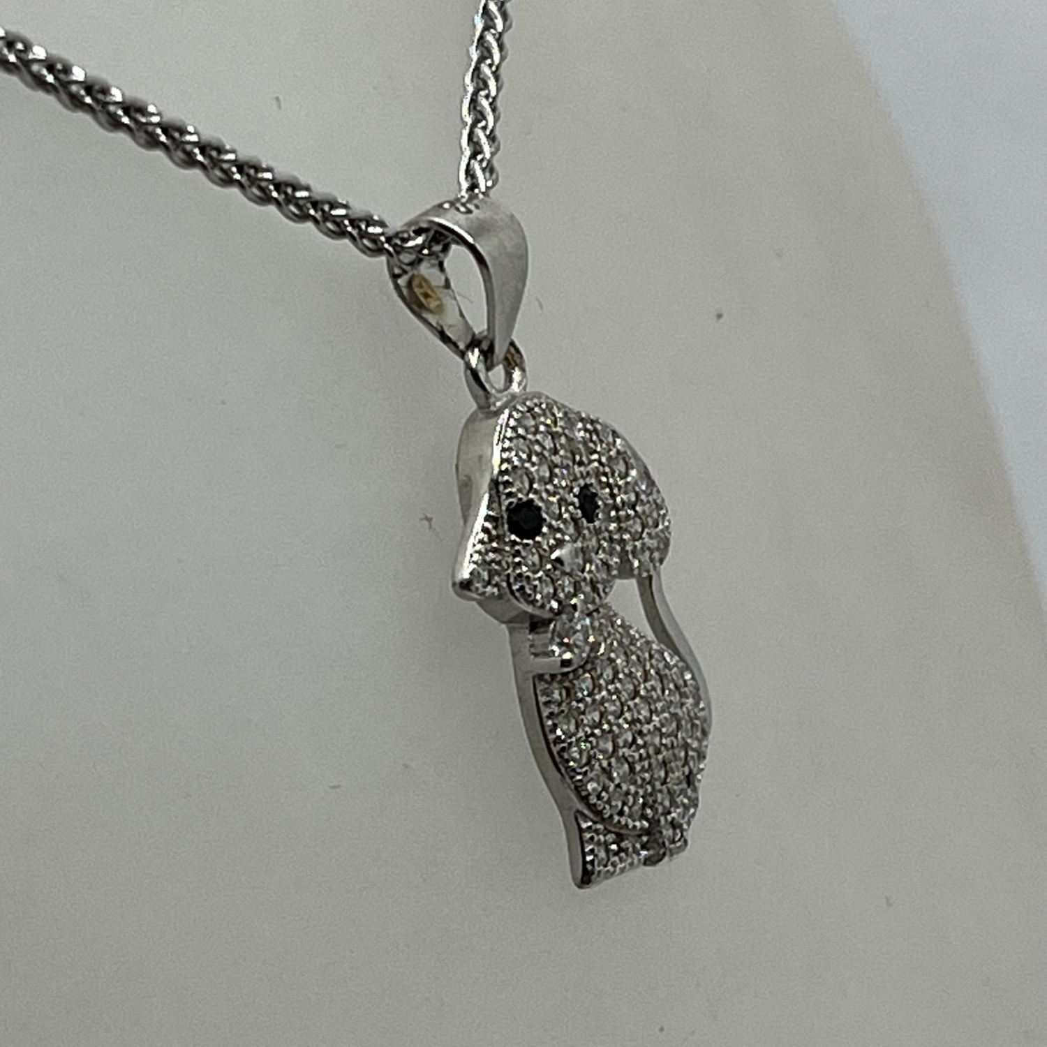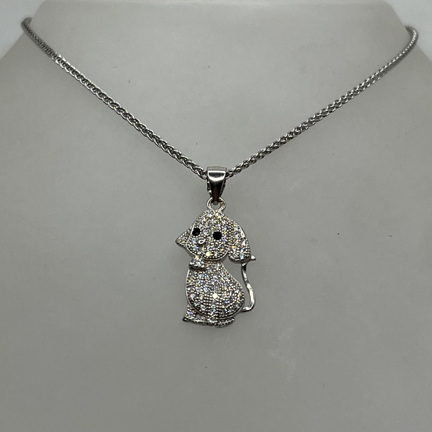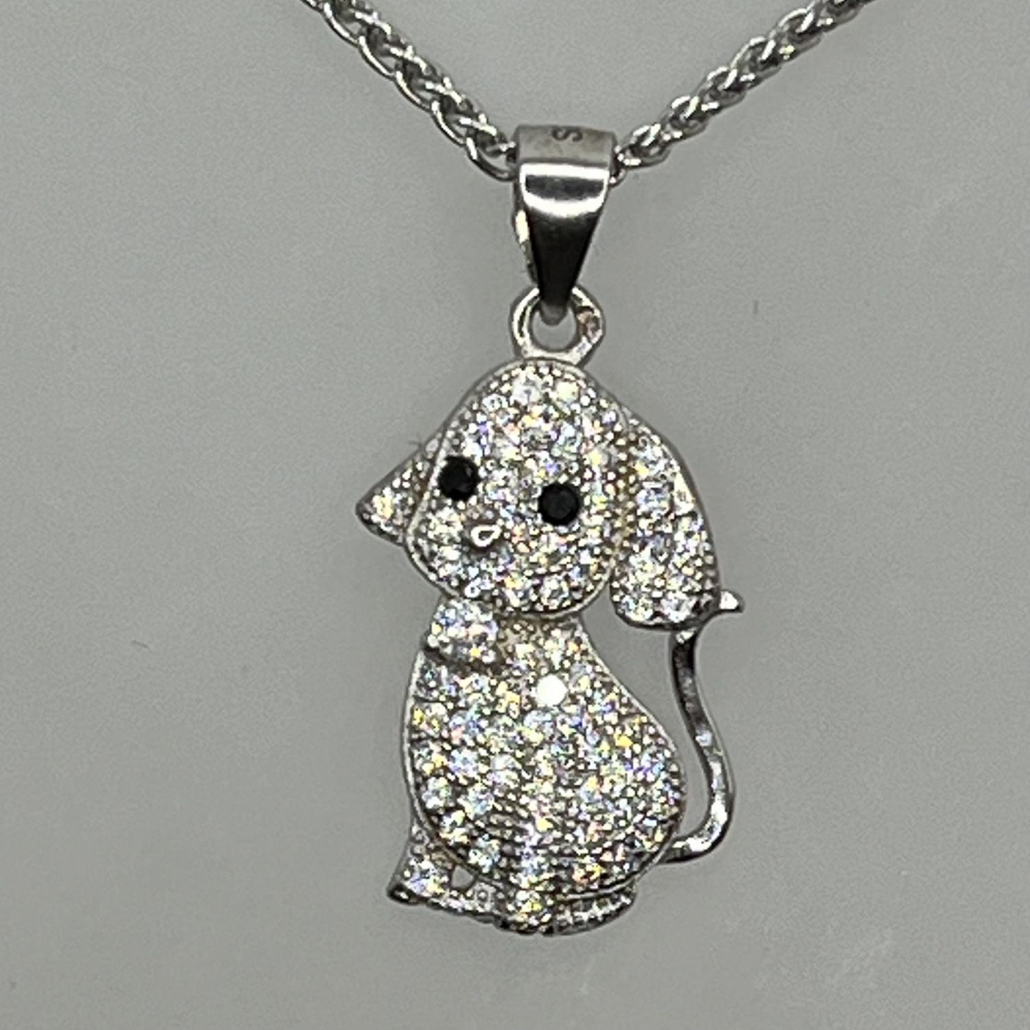 Kiskutya alakú ,fehércirkónia kristály kövekkel kirakott ezüst medál,rhodiumozott felülettel.