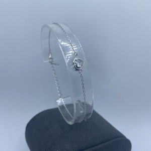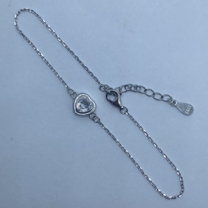 Tömör szemes anker karlánc egy darab fehér,szív alakú kővel,ródiumozott felülettel.Hossza 17-20 cm között állítható.A köves rész méretei:7.4*7.7 mm