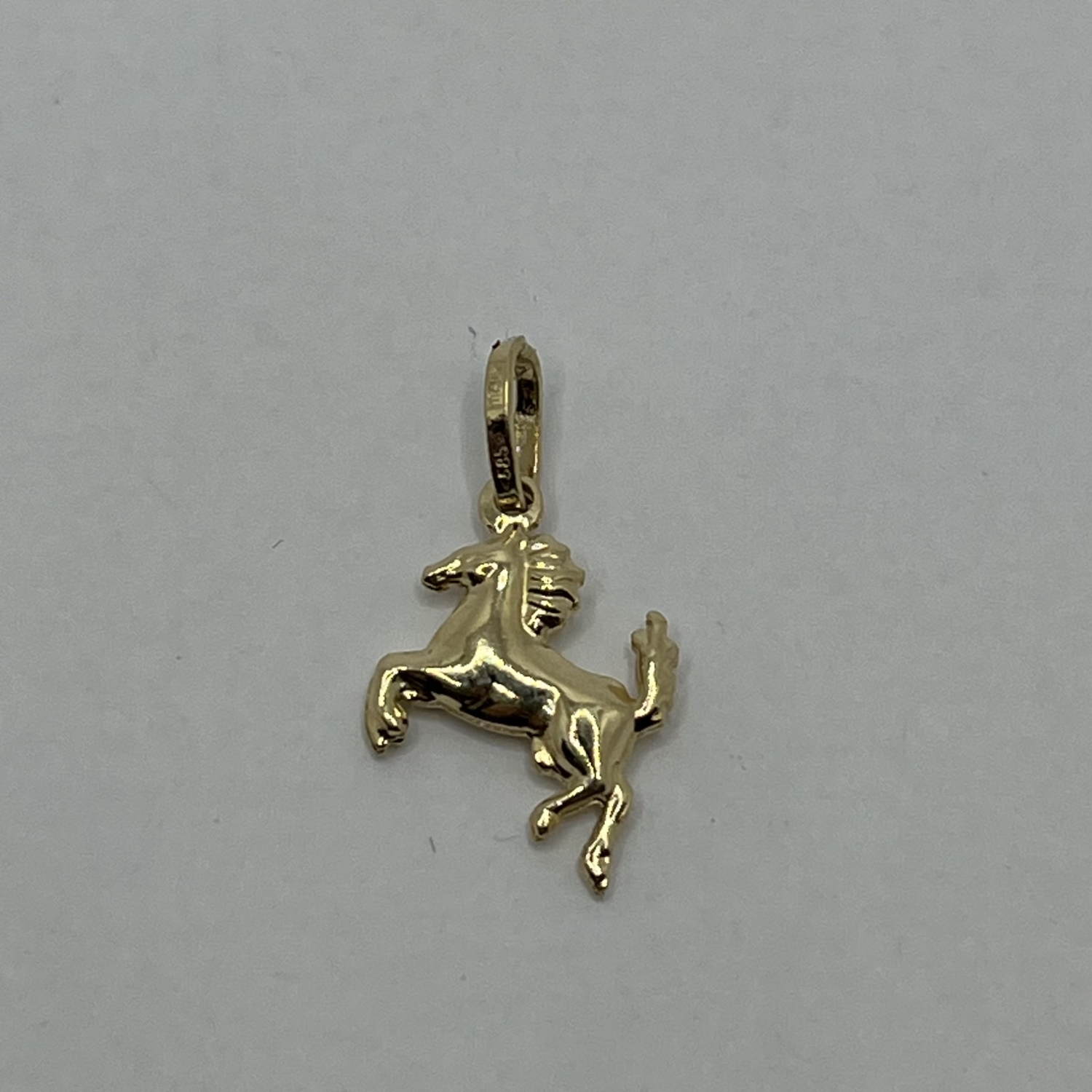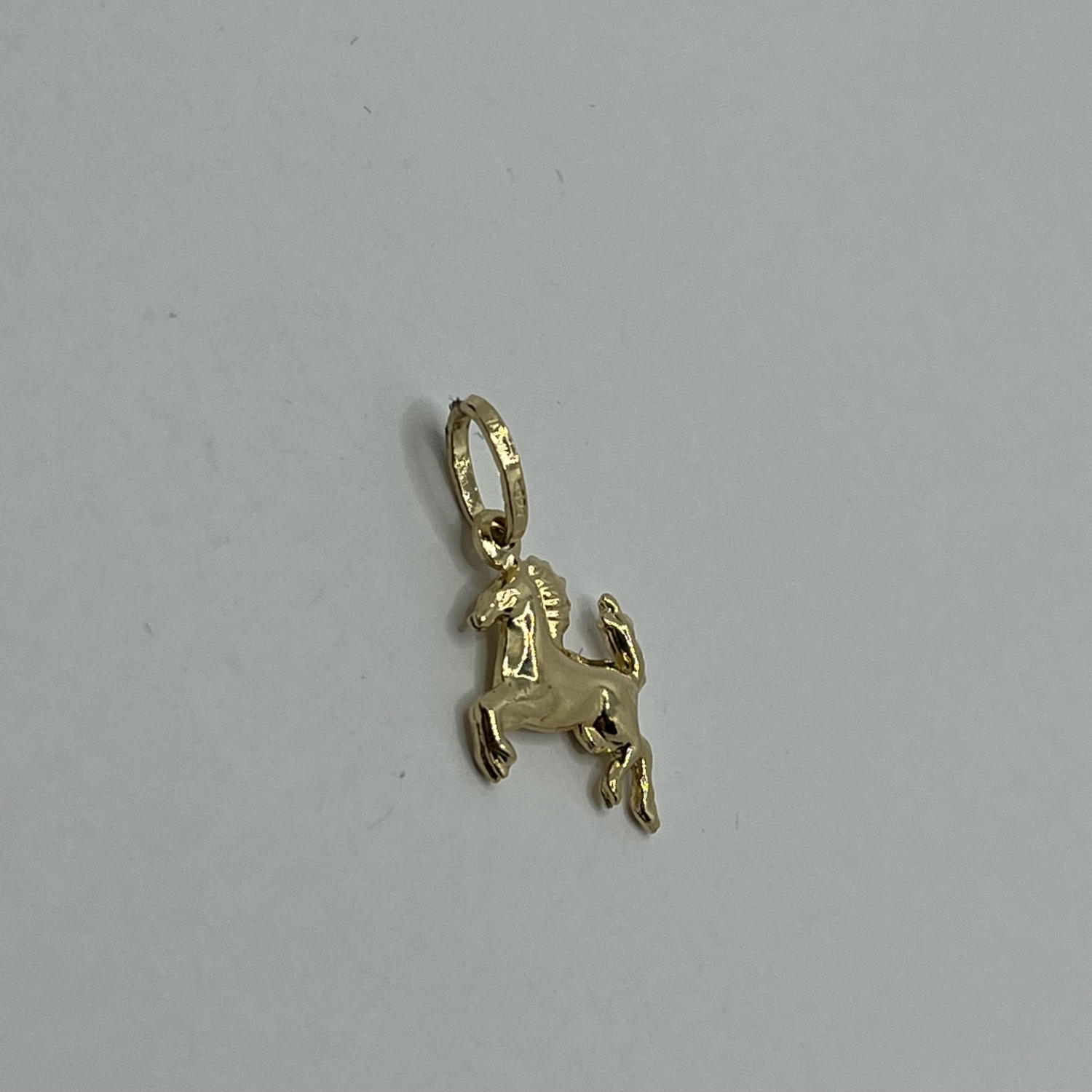 14 karátos sárga aranyból készült,fényes, ugró ló formájú medál.