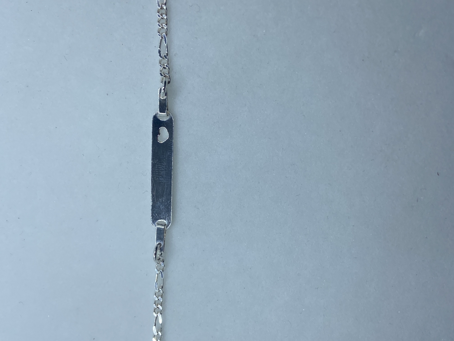 Tömör szemes,lapbetétes szivecskés,gravírozható gyerek karlánc.Hossza 15 cm.Lapbetét szélessége*hossza:4,5*26 mm.